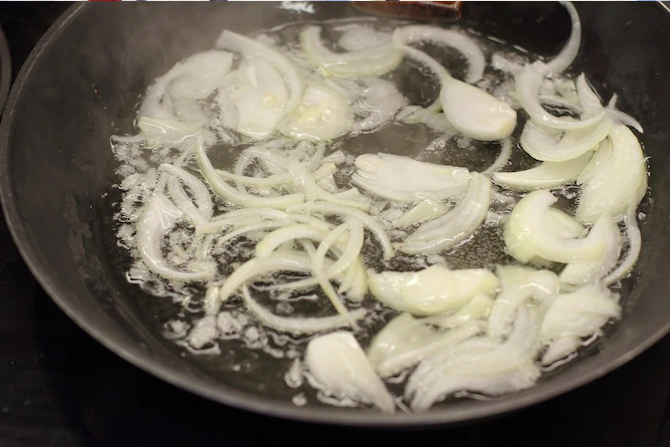 - Cebulę pokrój w piórka, czosnek przeciśnij przez praskę. Podsmaż je na oleju.